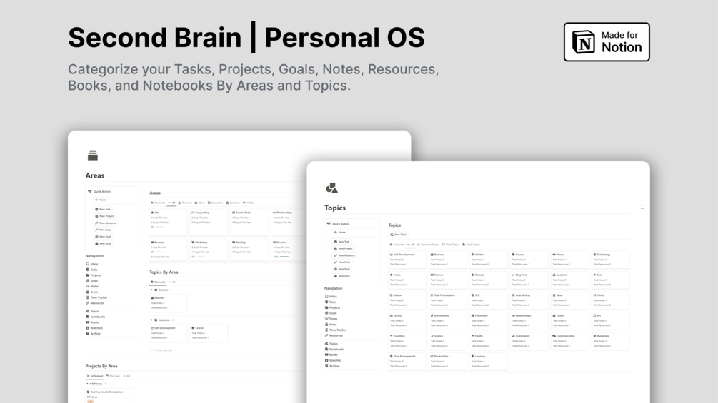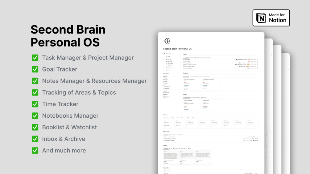 Take your productivity to the next level with Notion Second Brain - Personal OS. Second Brain - Personal OS is a system designed to help you organize and manage all aspects of your personal and professional life.