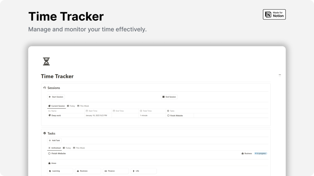Notion Time Tracker gives you full control of your tasks and time, helping you stay focused and achieve more.