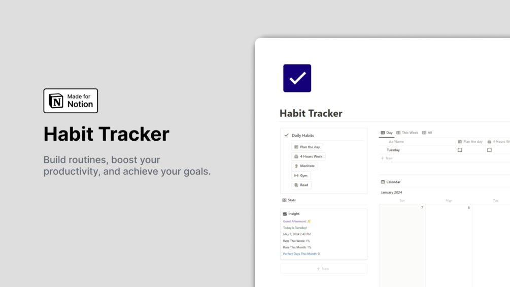 Notion Habit Tracker is a powerful Notion template designed to help build and maintain positive habits. With this template, you can easily track, monitor, and improve your daily habits.