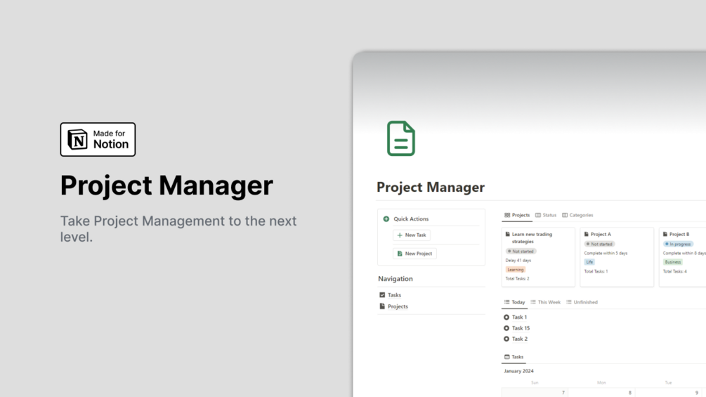 Notion Project Manager is a Notion system that allows you effectively manage and organize all your projects. With this template, you can plan and execute projects seamlessly.
