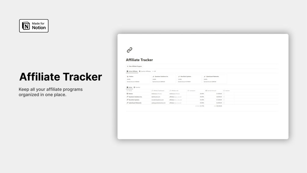 Stay organized and maximize your affiliate earnings with this Notion Affiliate Tracker, designed to help you easily manage programs, track commissions, and optimize performance in one place.